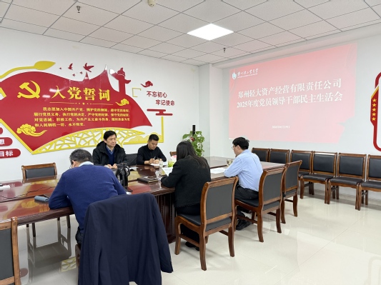 1月19日上午,郑州轻大资产经营有限责任公司在公司三楼会议室召开2025年度党员领导干部民主生活会,副校长张成、党委巡察办主任吴根甫到会指导,公司领导班子成员参加会议。会议由公司党总支书记万慧杰主持。